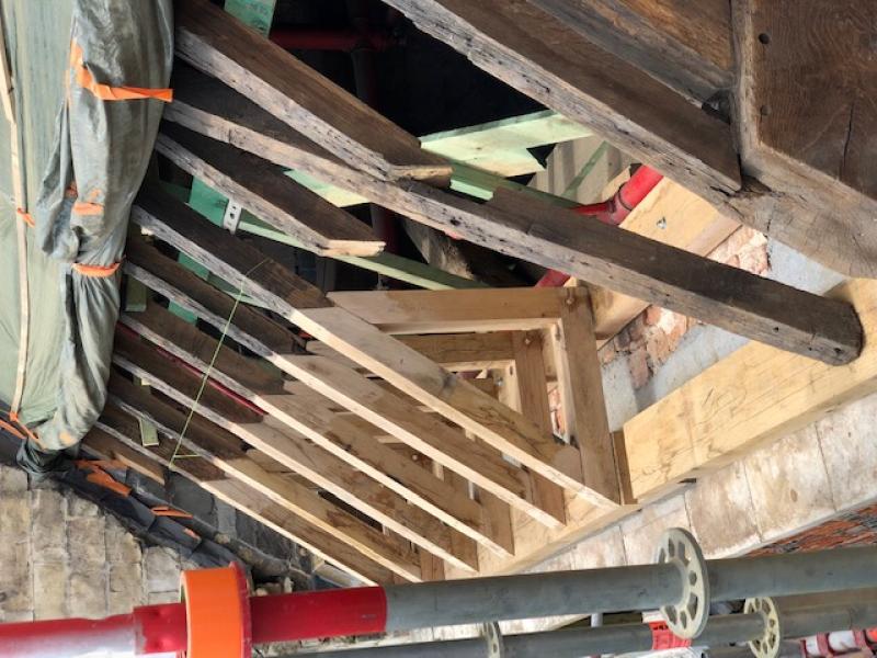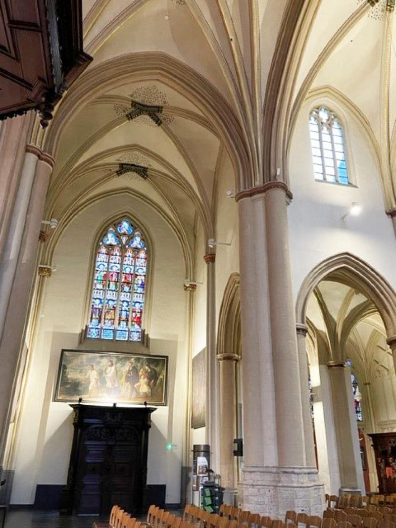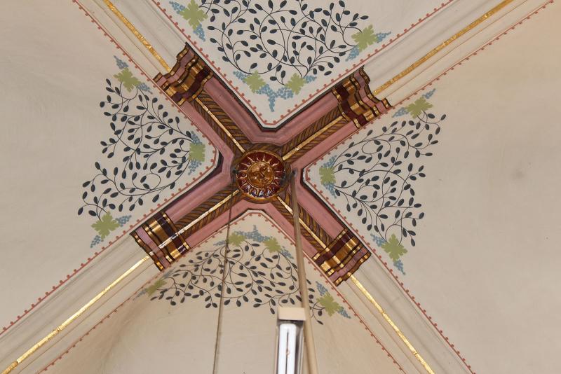 • Interieurrestauratie: restauratie muurschilderingen Godfried Guffens, decoratieve schilderingen, 7 traveeën van priesterkoor, herinrichting koor en meubilair